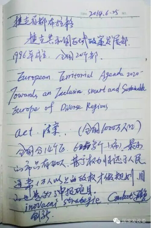 2014年6月25日,孙德忠在捷克首都布拉格考察时,用双语记录下心得体会。